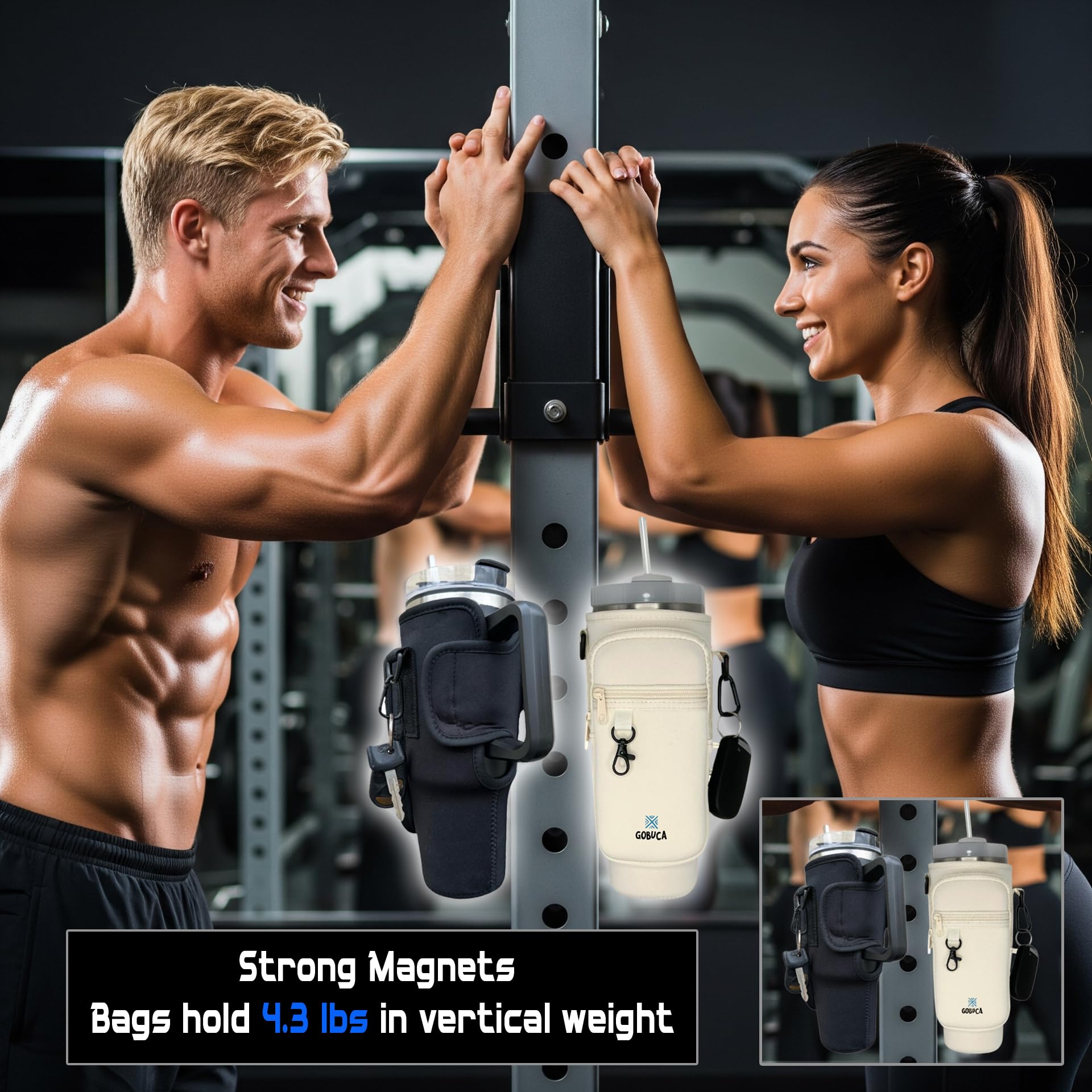 - Secure and Convenient Magnetic Stanley® Tote Bag: Experience the ultimate convenience with Gobuca's magnetic water bottle holder, ideal for anyone on the go. Easily attaches to any metal surface. The pouch secures your bottle, ensuring hydration is just a grab away, whether you're at the gym or on a busy day. Feel the relief of knowing your bottle won’t spill, leaving your hands free for other essentials.