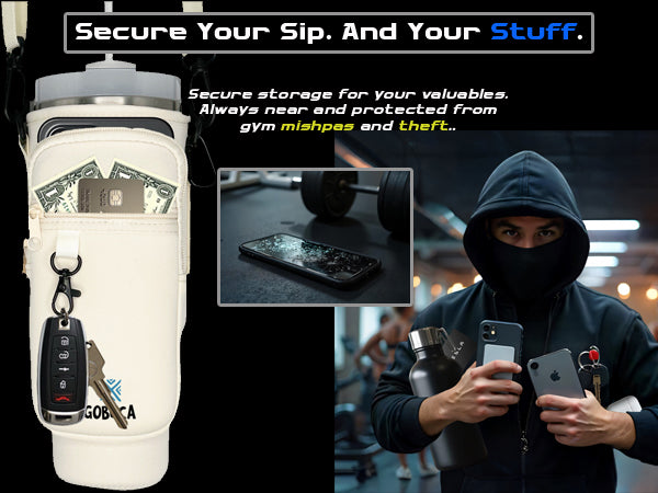 - Secure and Convenient Magnetic Stanley® Tote Bag: Experience the ultimate convenience with Gobuca's magnetic water bottle holder, ideal for anyone on the go. Easily attaches to any metal surface. The pouch secures your bottle, ensuring hydration is just a grab away, whether you're at the gym or on a busy day. Feel the relief of knowing your bottle won’t spill, leaving your hands free for other essentials.